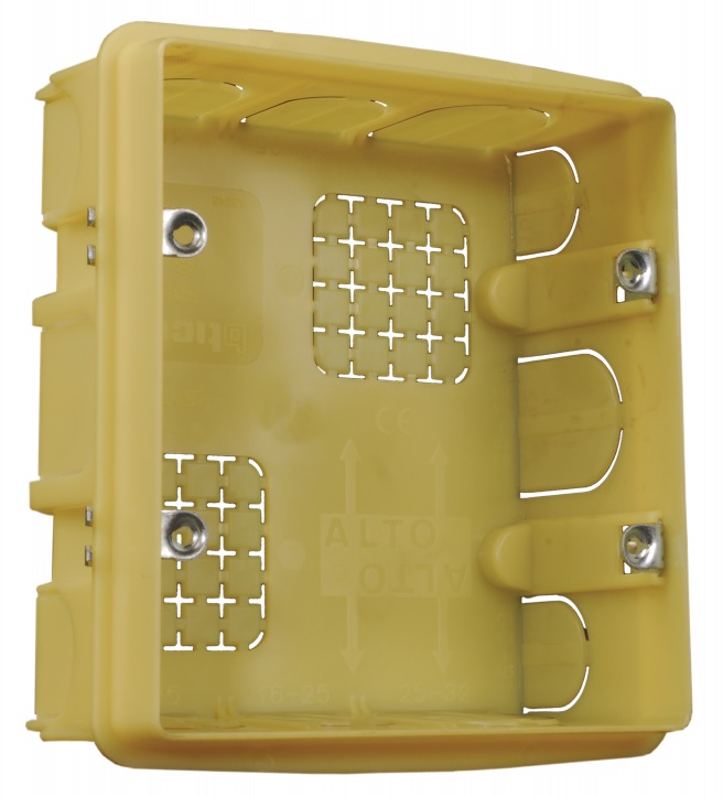 BIAMP BBI2 – монтажная коробка для врезной установки панелей управления PM1122RL или других приборов с аналогичными габаритами. Выполнена из прочного пластика желтого цвета, снабжена отверстиями для винтового крепления и перфорацией под кабельные вводы.