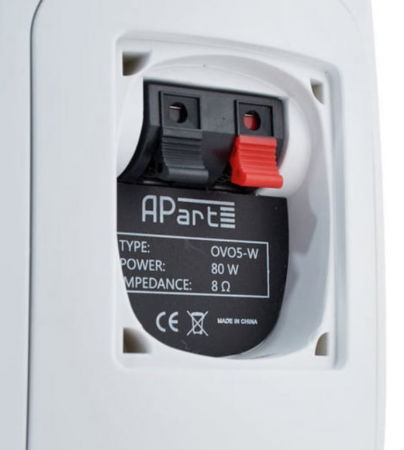 BIAMP OVO5-W – двухполосный настенный громкоговоритель с элегантным дизайном, высококачественным звуком и весьма доступной ценой. Он оборудован высокоэффективной связкой из 5.25" НЧ вуфера с бумажным диффузором и 1" ВЧ твитера с шелковым куполом, которые обеспечивают выходную мощность на уровне RMS 50 Вт (peak 80 Вт) и звуковое давление до 105 дБ. При этом номинальный импеданс в 8 Ом позволяет подключать до 2-х акустических систем к одному выходу 4 Ом. Для подключения к усилительному оборудованию на задней стенке предусмотрены удобные зажимные клеммы Quick-Fit. АС выпускается в лаконичном корпусе из высокопрочного АБС-пластика с защитной сеткой из стали с порошковым покрытием и предполагает настенный накладной монтаж с применением комплектного наклонно-поворотного кронштейна ли же просто размещение на любой горизонтальной поверхности.