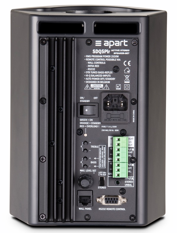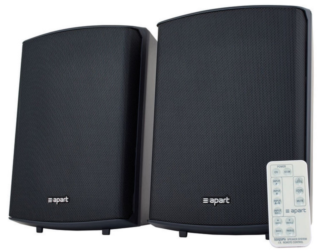 BIAMP SDQ5PIR-BL – комплект из активной и пассивной акустических систем (стерео пара), выделяющихся элегантным дизайном, высококачественным звуком, широкими возможностями управления и весьма доступной ценой. Каждая из АС снабжена высокоэффективной связкой из 5.25" НЧ вуфера с полипропиленовым диффузором и 1" ВЧ твитера с шелковым куполом, которые в паре с встроенным в активную АС усилителем обеспечивают выходную мощность на уровне RMS 2х15 Вт (max 2х30 Вт) и звуковое давление до 101 дБ. Также активный громкоговоритель снабжен стерео аудио входом на mini-jack 3.5 мм, балансным аудио входом на 2хEuroblock 3-pin, поворотными регуляторами настройки тембра Bass/Treble и управления громкостью выходного сигнала, ИК-портом для управления с пульта ДУ, портами RS232 для интеграции в автоматизированные аудиосистемы и RJ45 для управления с панелей ACP/ACPL/ACPR. Питание реализовано от стандартной бытовой электросети AC 230 В. Дополнительно предусмотрена система защиты от перегрузок и информативная световая индикация текущего состояния. АС выпускается в лаконичном корпусе из высокопрочного АБС-пластика с защитной сеткой из стали с порошковым покрытием и предполагает настенный накладной монтаж с применением комплектного наклонно-поворотного кронштейна ли же просто размещение на любой горизонтальной поверхности.