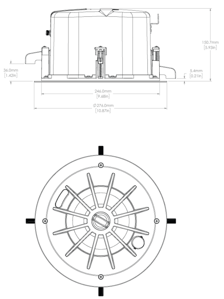 BIAMP Desono C-IC6 Red – двухполосная акустическая система для врезного монтажа в потолочные или стеновые фальш-конструкции. Применяется при построении конференц-систем различного уровня сложности, прекрасно подходит для помещений с низкими потолками. Она оборудована высокоэффективной связкой из 6.5" НЧ-вуфера с бумажным диффузором и 1" ВЧ-твитером с мягким куполом, которые обеспечивают выходную мощность на уровне 60-120 Вт при подключении 8 Ом с пиковой мощностью 240 Вт. Подключение выполняется через клеммный терминал типа Euroblock 4-pin.