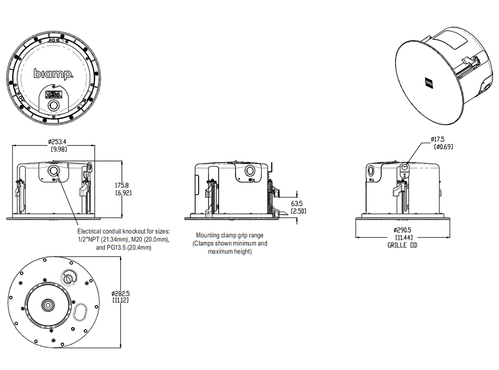 BIAMP Desono DX-IC6-W – двухполосная акустическая система для врезного монтажа в потолочные или стеновые фальш-конструкции. Применяется при построении конференц-систем различного уровня сложности, прекрасно подходит для помещений с низкими потолками. Оборудована высокоэффективной связкой из 6.5" НЧ-вуфера с бумажным диффузором и 1" ВЧ-твитером с мягким куполом, которые обеспечивают высокие акустические показатели. Данная серия колонок оснащена трансформатором, что позволяет использовать их не только в низкоомных линиях (импеданс 6,5 Ом, мощность 120 Вт), но и в трансляционных с уровнем сигнала 70В (мощность выбирается 60/30/15/7,5 Вт) или 100В (мощность 60/30/15 Вт). Подключение выполняется через клеммный терминал типа Euroblock 4-pin.