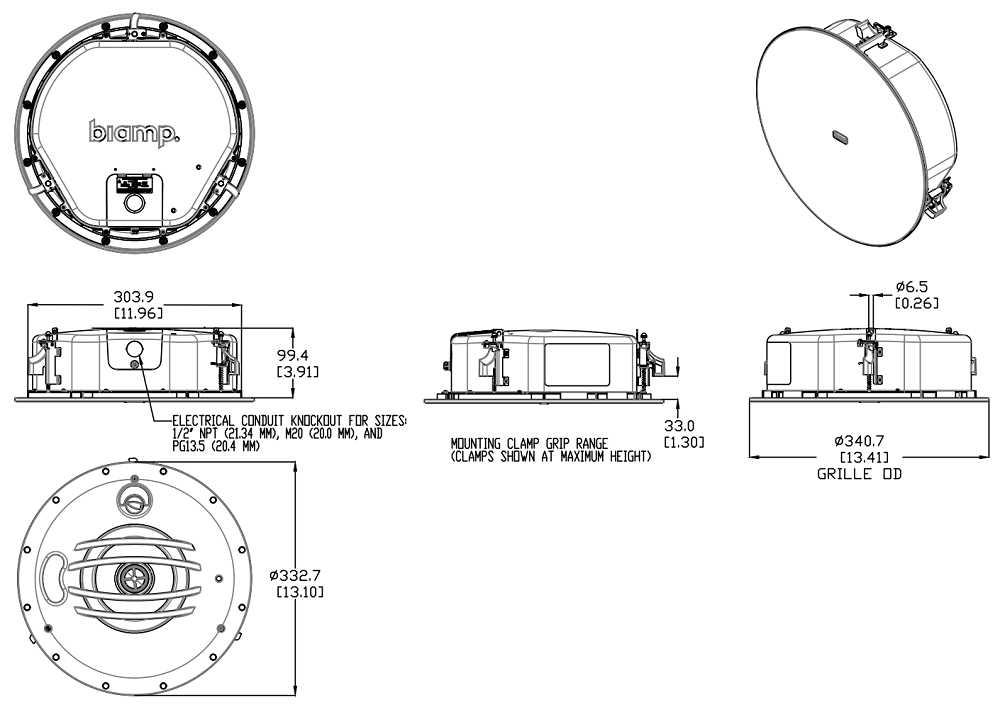 BIAMP Desono DX-IC6LP – двухполосная акустическая система для врезного монтажа в потолочные или стеновые фальш-конструкции. Применяется при построении конференц-систем различного уровня сложности, прекрасно подходит для помещений с низкими потолками. Оборудована высокоэффективной связкой из 6.5" НЧ-вуфера с бумажным диффузором и 1" ВЧ-твитером с мягким куполом, которые обеспечивают высокие акустические показатели. Данная серия колонок оснащена трансформатором, что позволяет использовать их не только в низкоомных линиях (импеданс 8 Ом, мощность 60 Вт), но и в трансляционных с уровнем сигнала 70В (мощность выбирается 60/30/15/7,5/3,75 Вт) или 100В (мощность 60/30/15/7,5 Вт). Подключение выполняется через клеммный терминал типа Euroblock 4-pin.