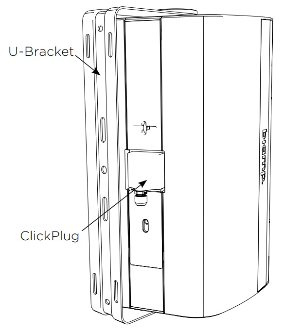 Корпус выполнен из АБС-пластика и дополнен защитной сеткой из стали с антикоррозионным порошковым покрытием. Он защищен по стандарту IP54 и может располагаться в помещениях с «мокрыми» процессами или даже на улице (под навесом). Дополнительно сабвуфер снабжен устройством ClickPlug подключения и U-образным ClickMount кронштейном для настенного крепления и последующего позиционирования. Также доступна возможность подвесного монтажа с применением дополнительных опциональных креплений.