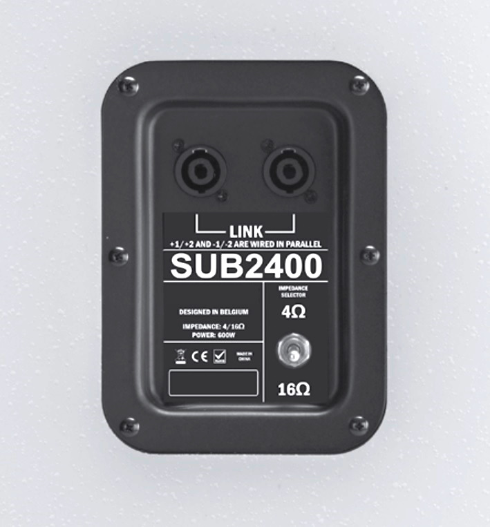 Основой его конструкции служит связка из двух 10" НЧ вуферов с бумажным диффузором, транслирующих звук в частотном спектре 45-150 Гц на мощности RMS 600 Вт (peak 2400 Вт). Для подключения к усилительному оборудованию предусмотрены аудио входы на проф. разъемах Speakon. Сабвуфер одинаково эффективно может работать при 4 Ом и 16 Ом. Выбор выполняется встроенным переключателем.