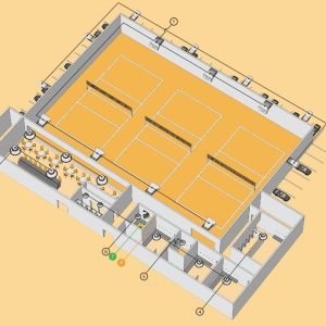Система трансляции и фонового озвучивания теннисного комплекса, площадью 800 м² - 1800 м² (потолочные громкоговорители).