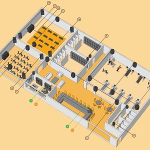 Фоновое озвучивание фитнесс-центра, площадью 450 м² - 750 м² (потолочные громкоговорители)